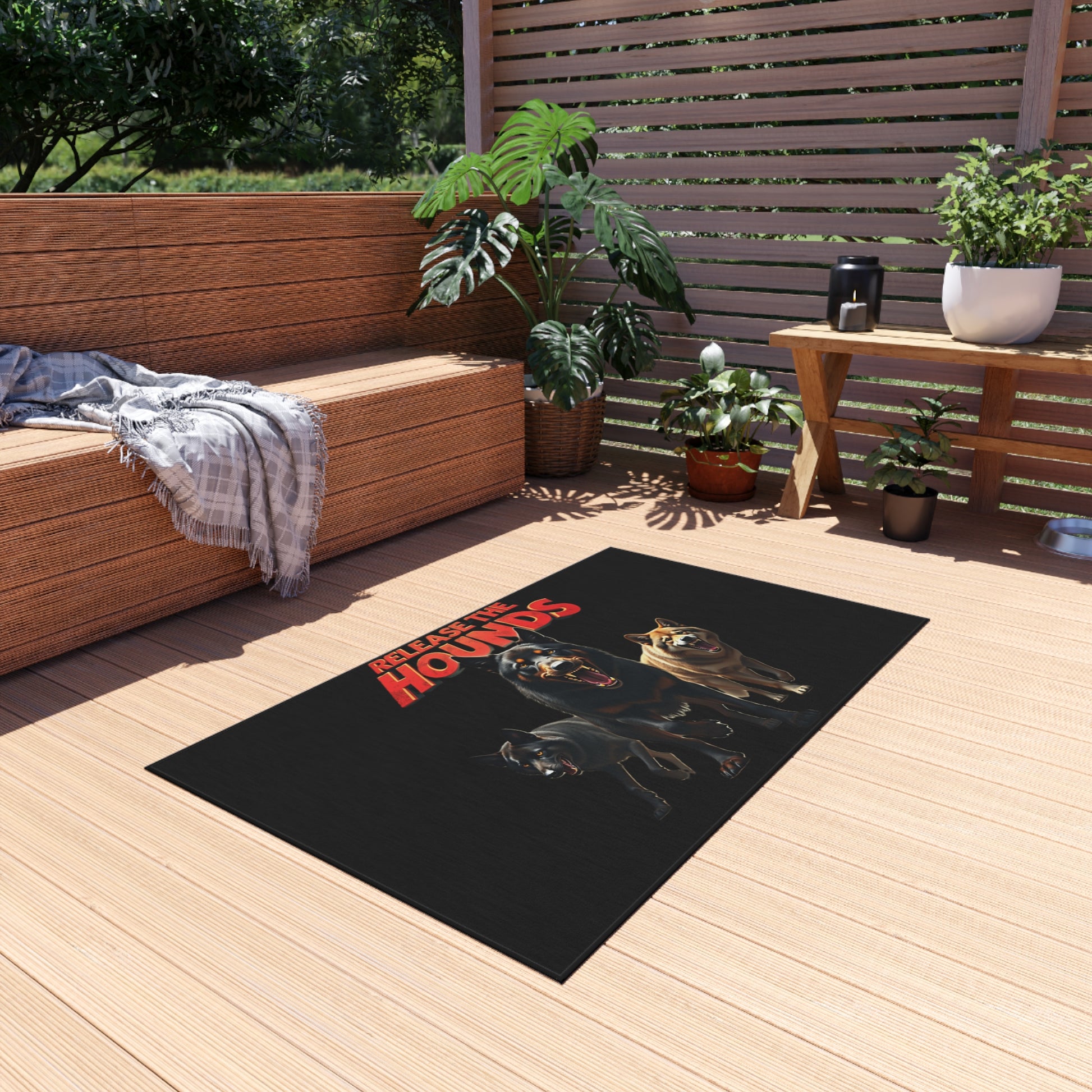 The Unleashed Guardians Outdoor Rug — "Release the Hounds"