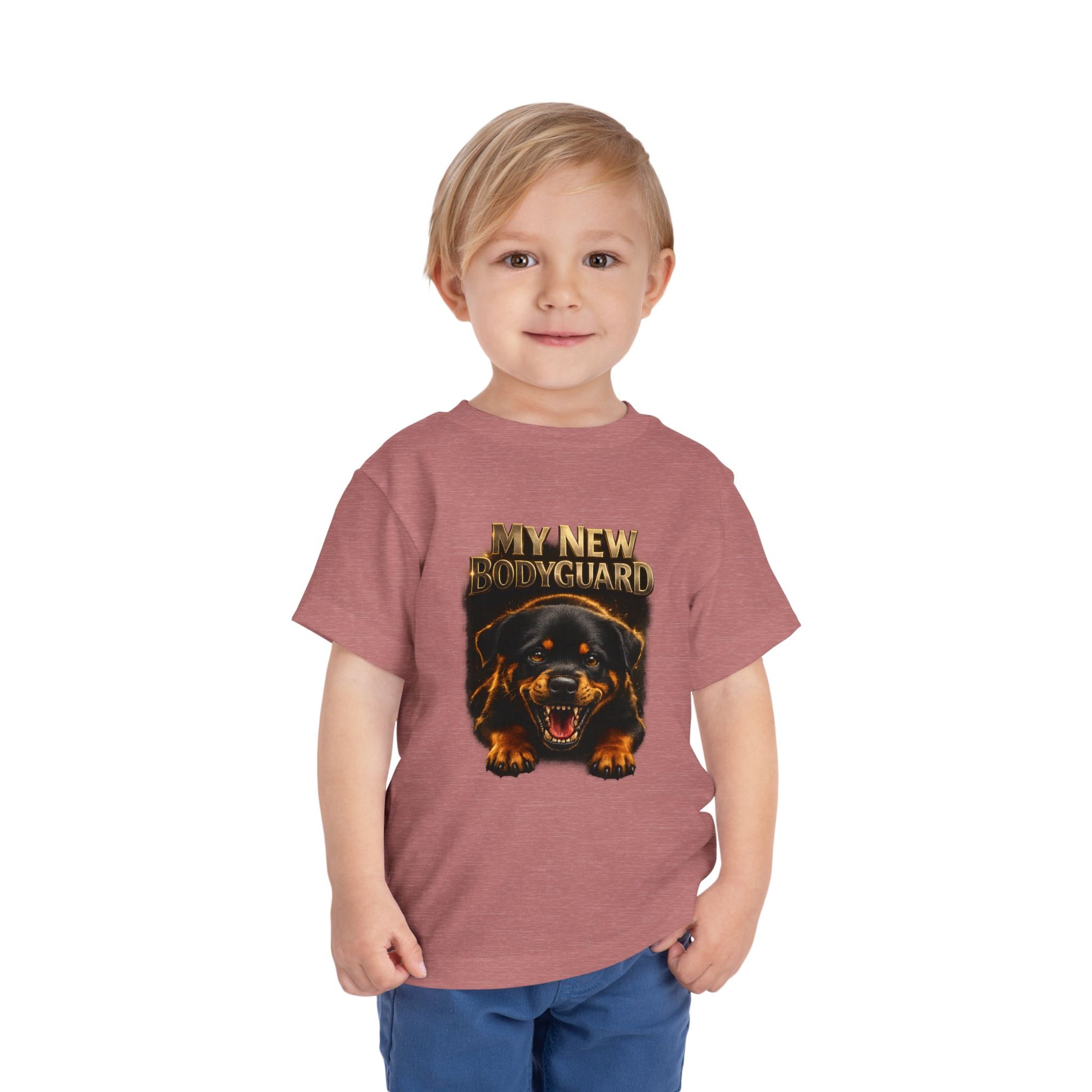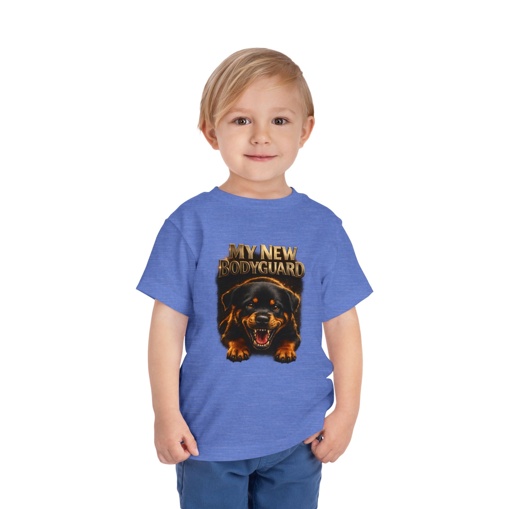 Kids Tee — "My New Bodyguard" Rottweiler Graphic Shirt