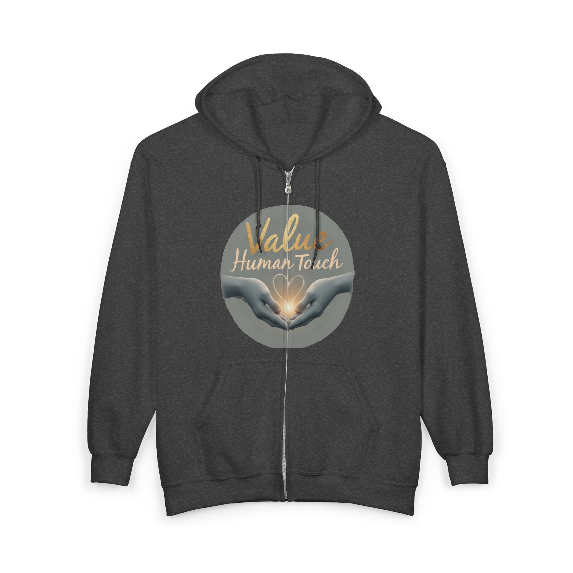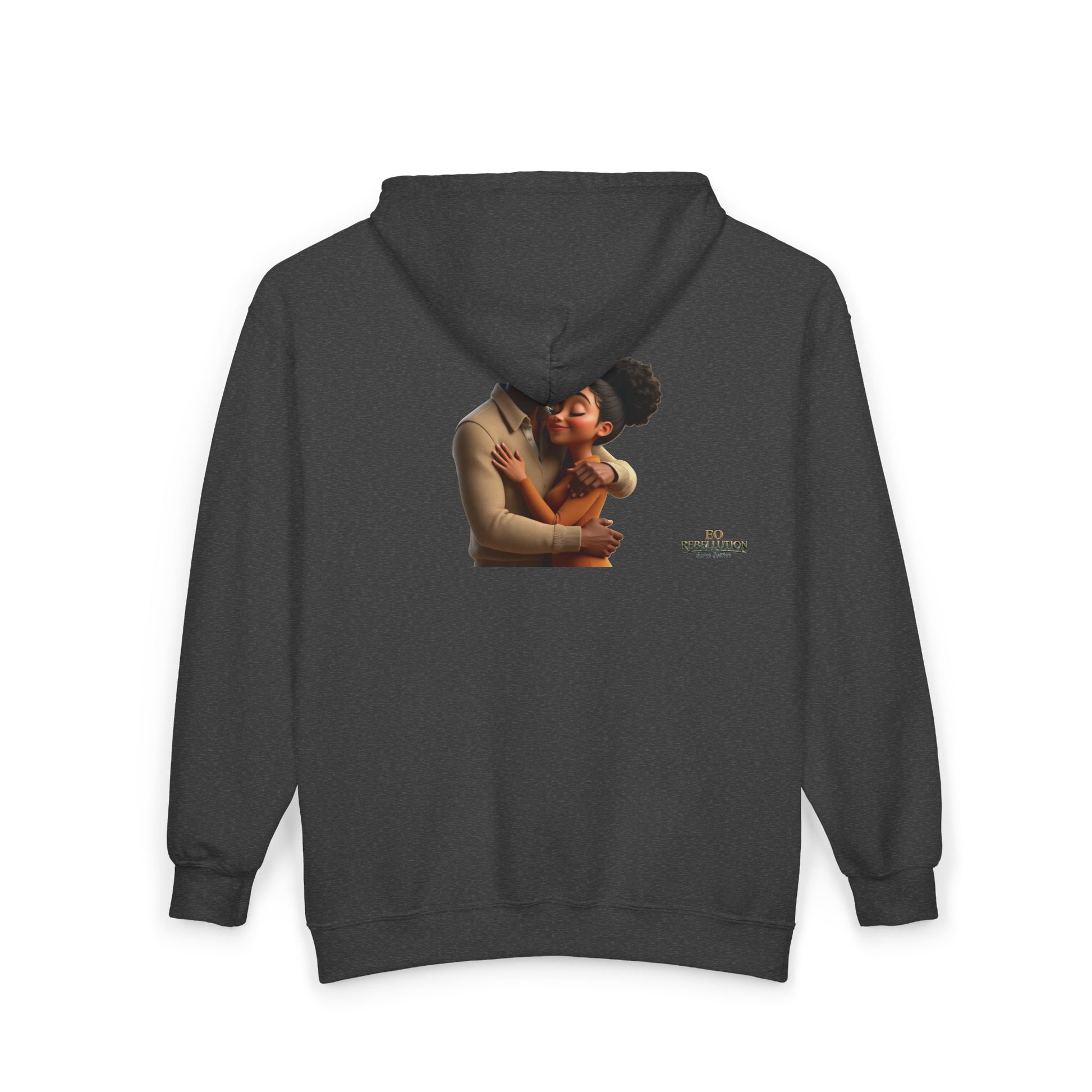 This hoodie carries the core tenet of our movement on both sides. The embrace is "The Foundation"—a pact of mutual support and the first building block of a restored community. The cupped hands holding the heart represent the active, careful 'Human Craftsmanship' of compassion; it is a skill we choose to practice. Together, they visualize our creed: to value the human touch is to commit to building and protecting the bonds that create true strength and balance. Wear this as a declaration that your rebellion is rooted in connection.